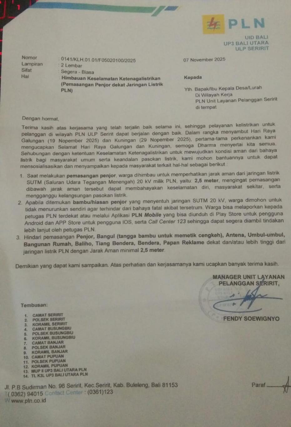 HIMBAUAN PEMASANGAN PENJOR DEKAT JARINGAN LISTRIK PLN