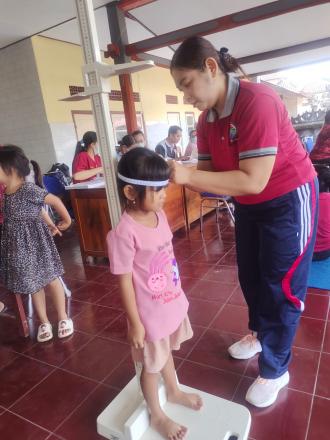 Pelayanan yang diberikan meliputi penimbangan balita, pengukuran tinggi badan, pemeriksaan kesehatan ibu hamil, pemberian vitamin, imunisasi, serta penyuluhan kesehatan oleh petugas kesehatan dari Puskesmas yang dibantu oleh kader Posyandu desa Beserta KPM Desa