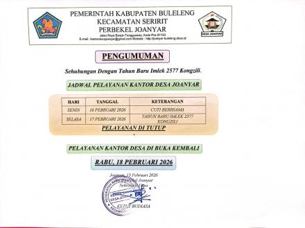 PENGUMUMAN JADWAL PELAYANAN KANTOR DESA JOANYAR