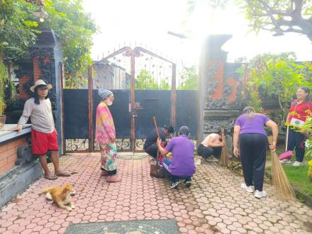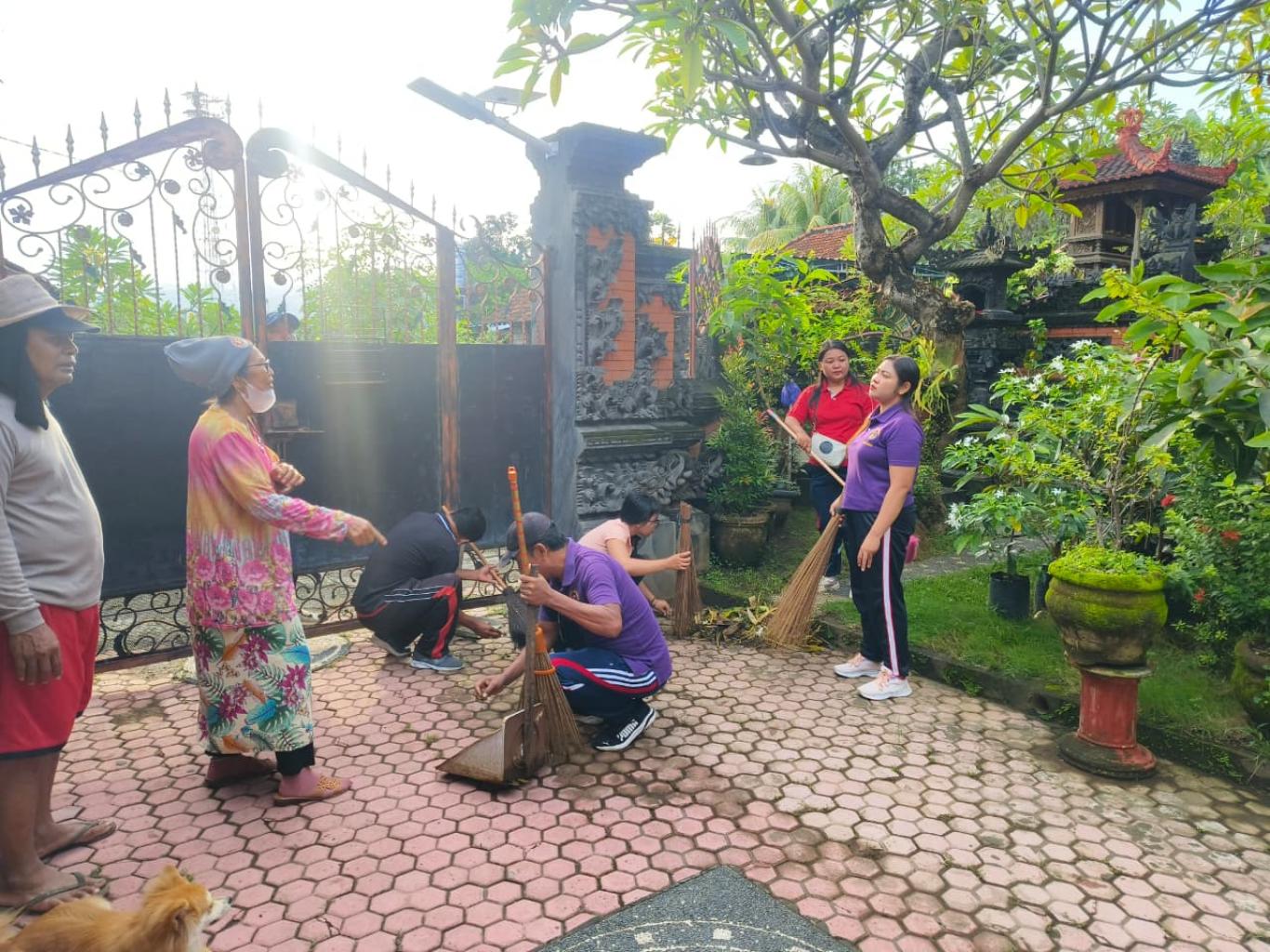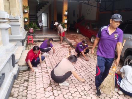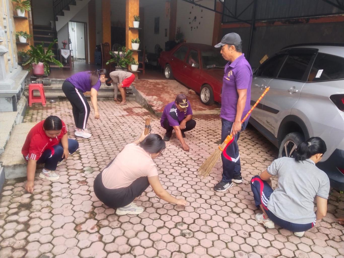 Kegiatan persiapan diawali dengan gotong royong yang melibatkan perangkat desa, kader PKK, pemilik rumah contoh a.n Bapak Nyoman Arjana. menata halaman rumah, serta mempersiapkan sarana pengelolaan sampah seperti tempat pemilahan sampah organik dan anorganik.